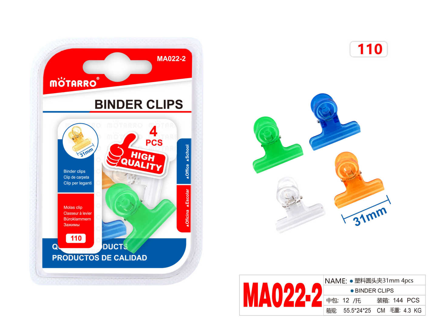 Binder Clips Multi Color 31mm 4pcs