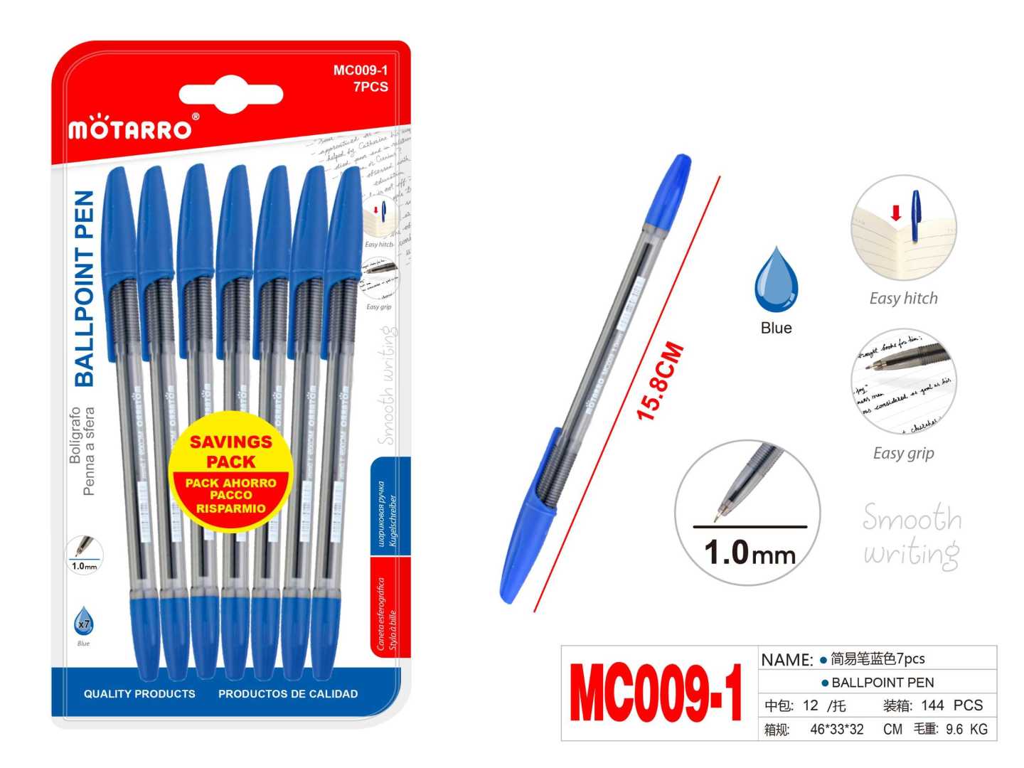 Ballpoint Pen Pack Blue 1.0mm 7pcs 15.8cm
