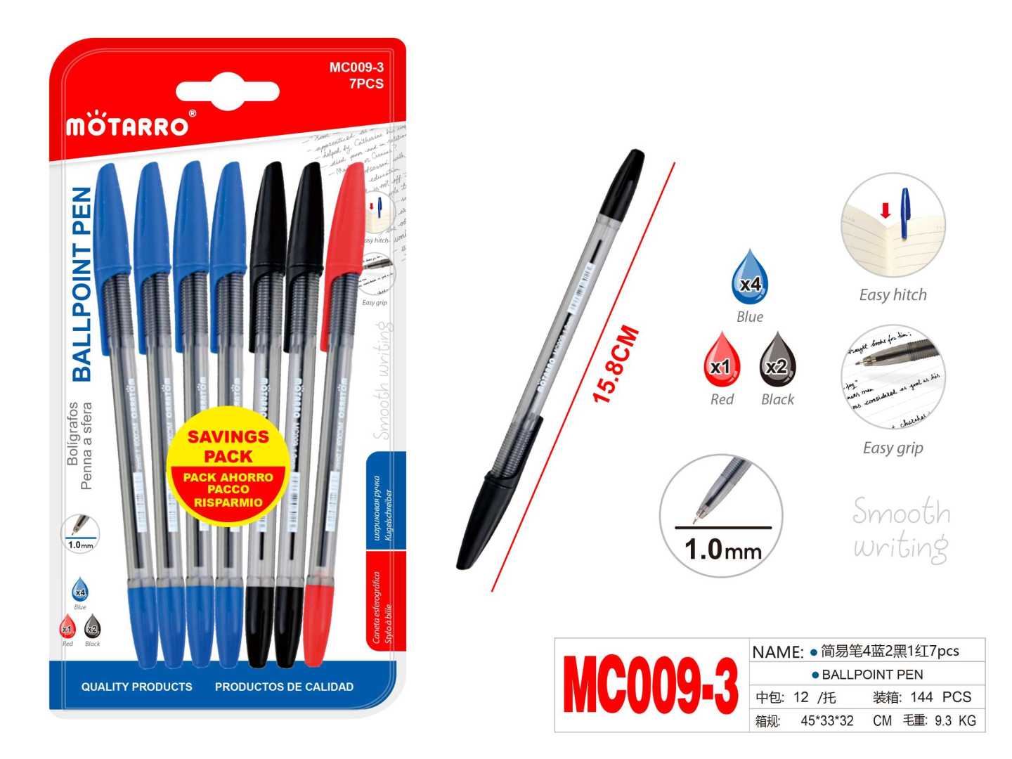 Ballpoint Pen Pack Assorted Blackx5/Redx1/Bluex4 1.0mm 7pcs 15.8cm