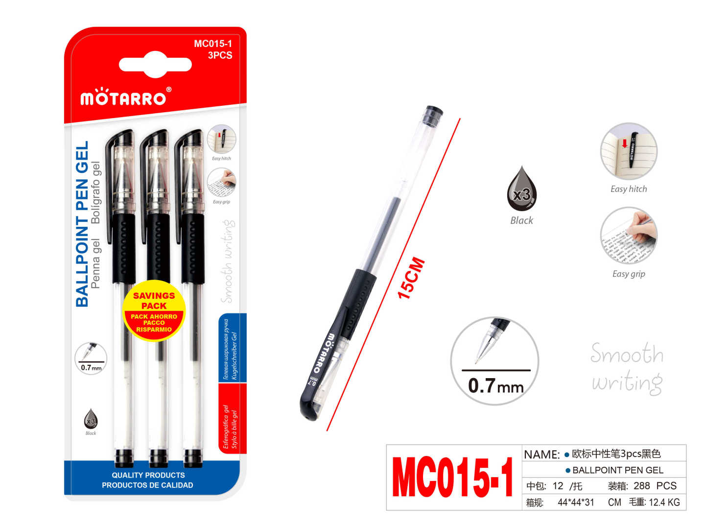 Gel Pen Pack Black 0.7mm 3pcs 15cm
