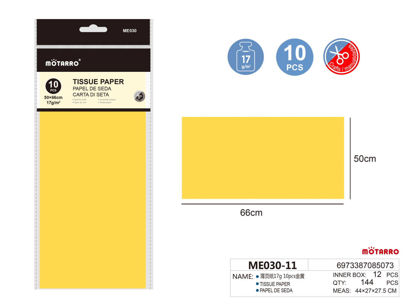 Tissue Paper 50*66cm 17g 10pcs Gold