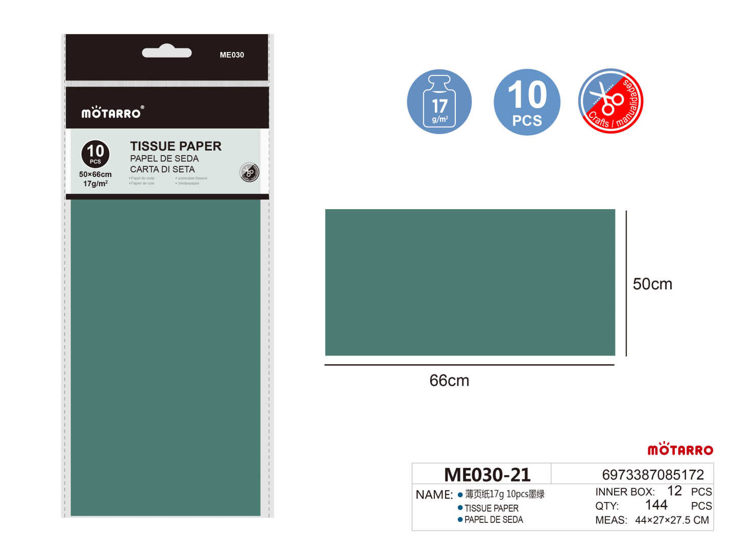 Tissue Paper 50*66cm 17g 10pcs Dark Green