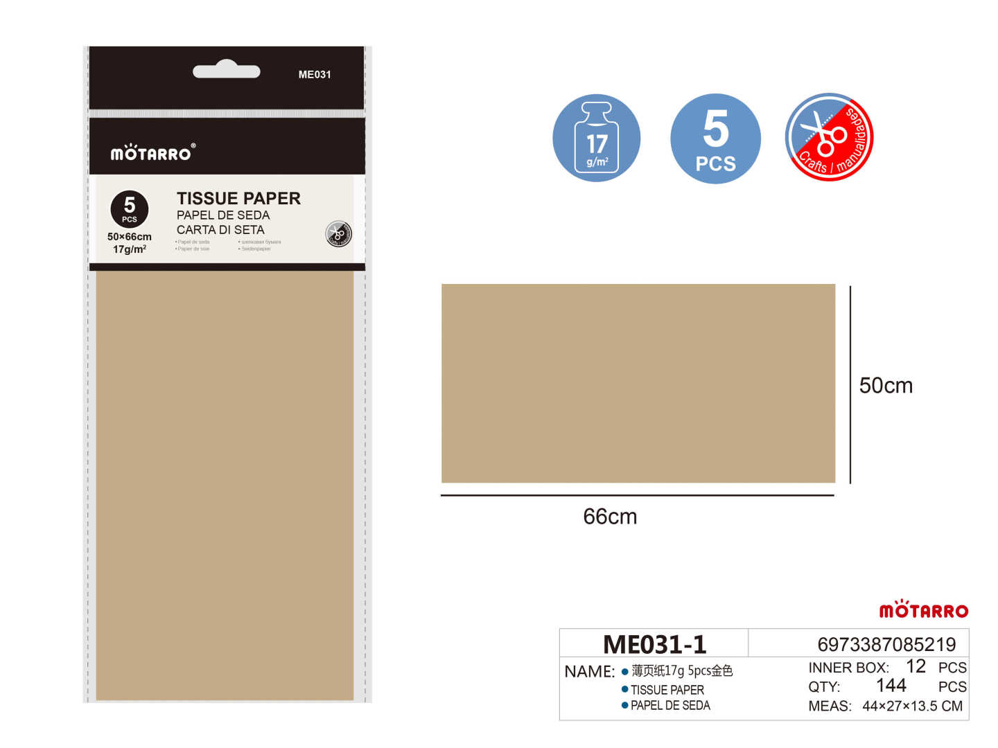 Tissue Paper 50*66cm 17g 5pcs Gold