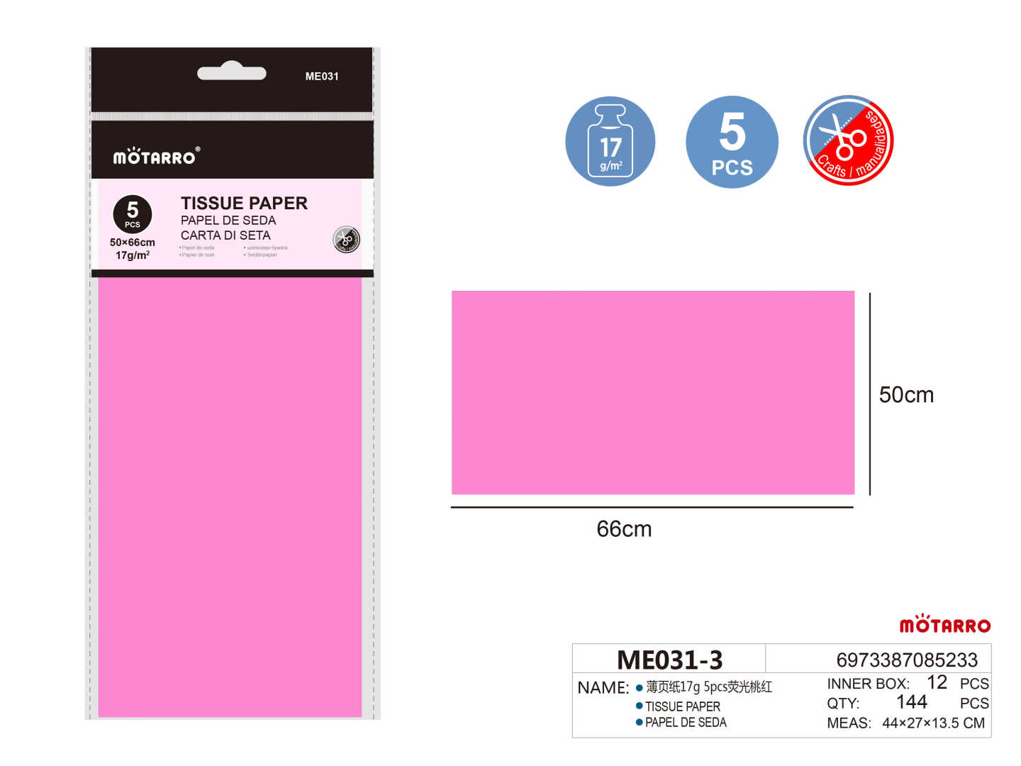 Tissue Paper 50*66cm 17g 5pcs Fluorescent Pink