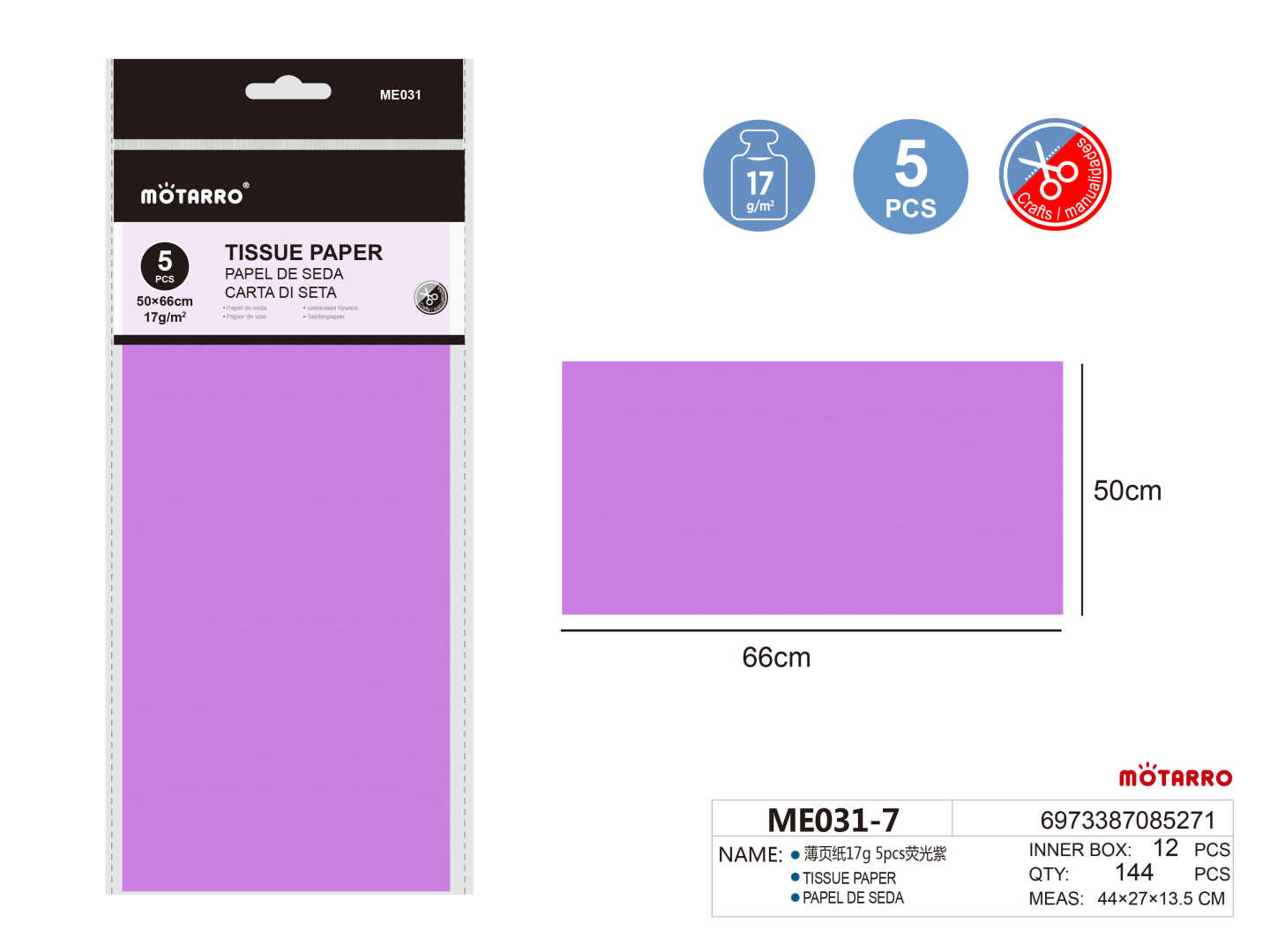 Tissue Paper 50*66cm 17g 5pcs Fluorescent Purple