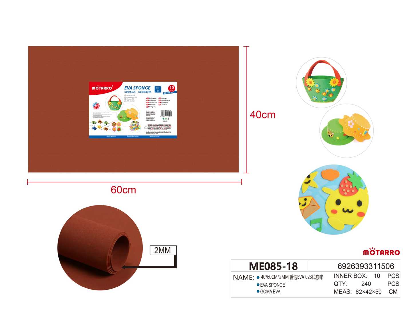 EVA Foam Sheet 40*60cm*2mm Light Brown
