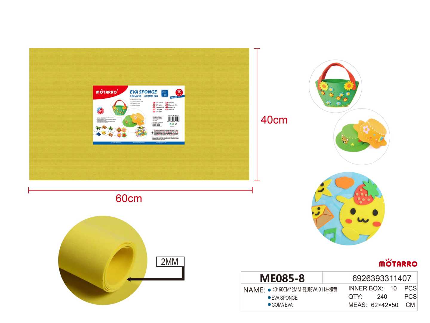 EVA Foam Sheet 40*60cm*2mm Lemon