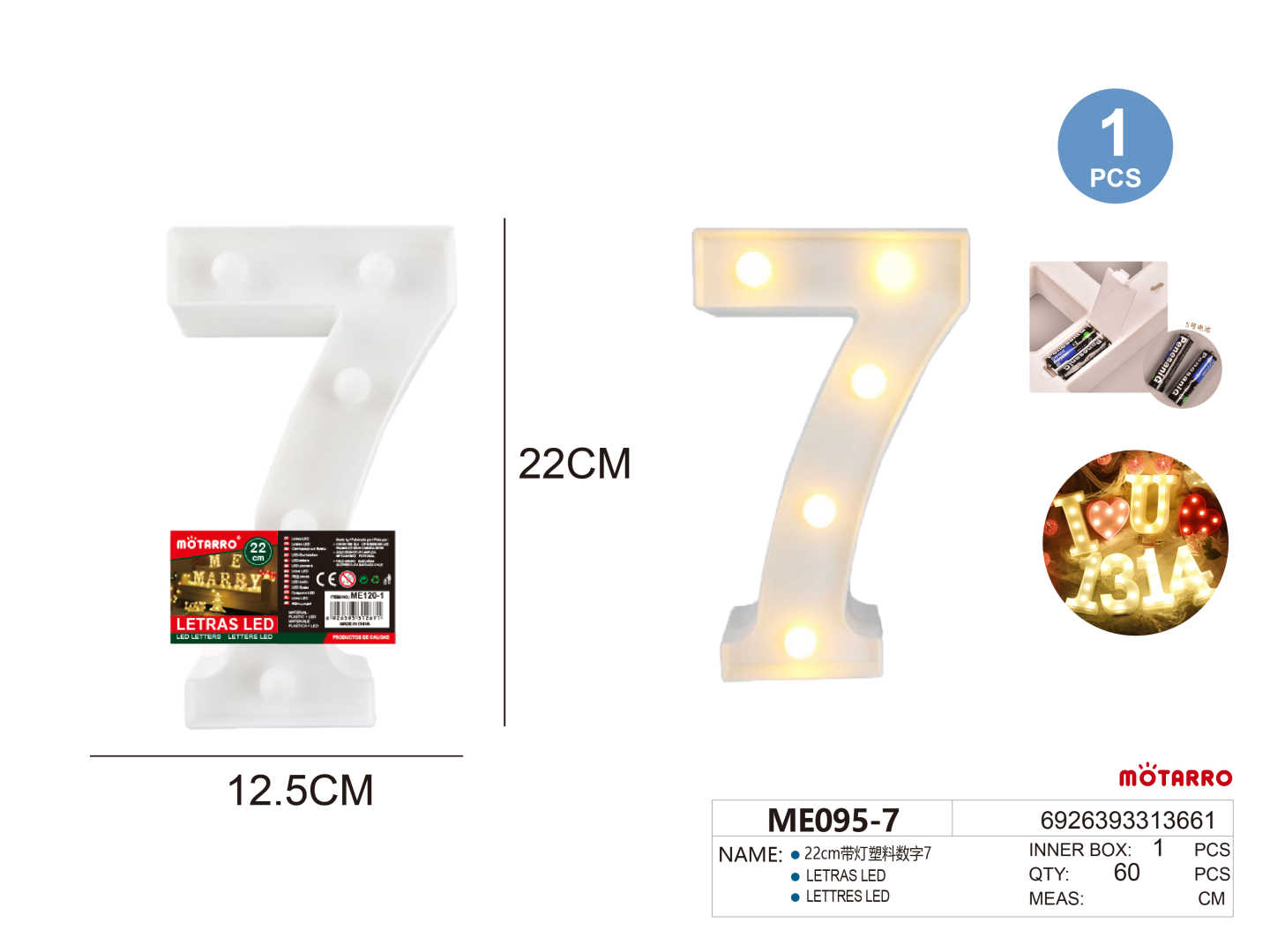 LED Number Light Sign 7 22cm
