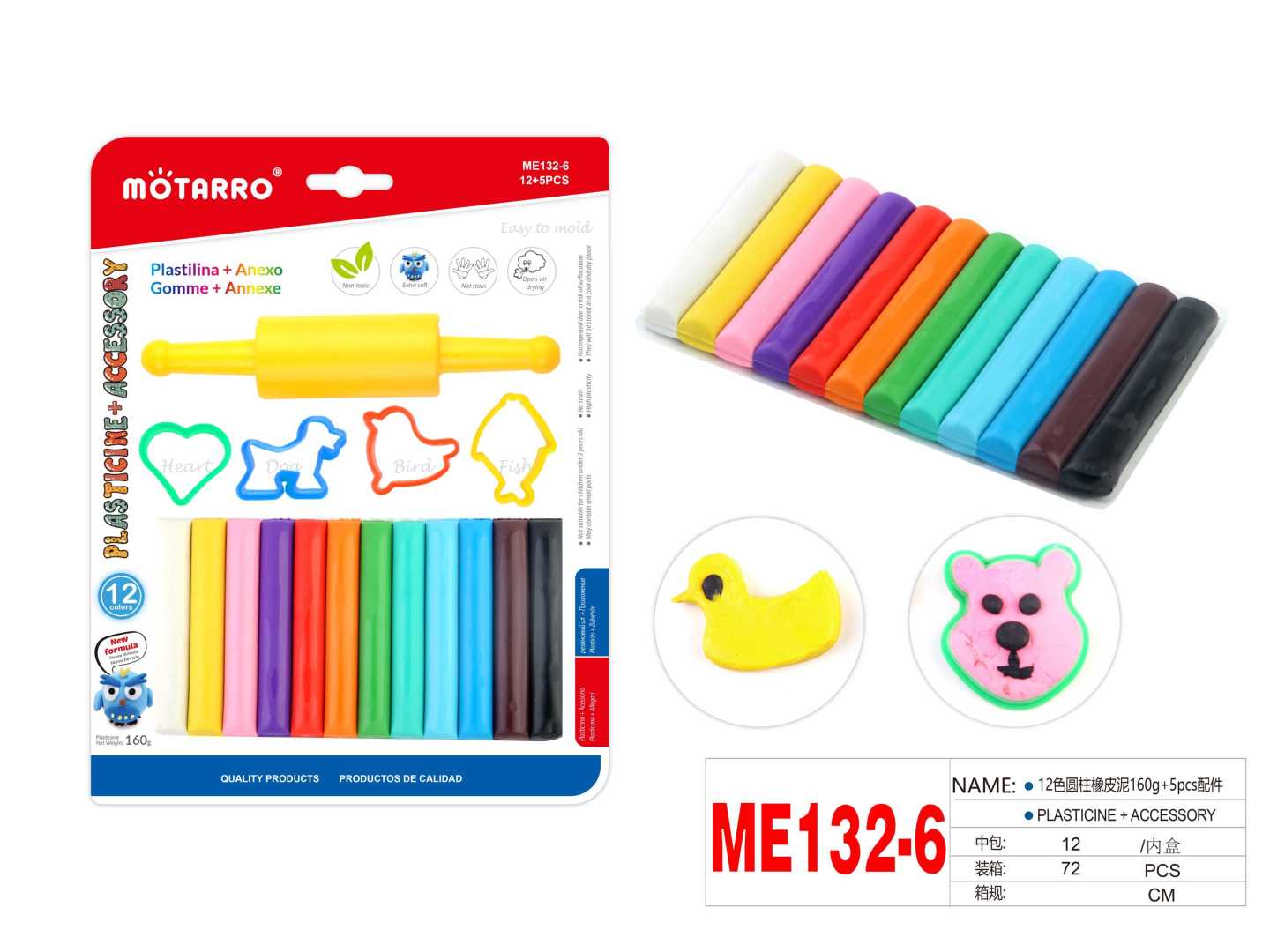 Plasticine kit(12Assorted Color 160g+5 Accessories) 17pcs 7.5cm