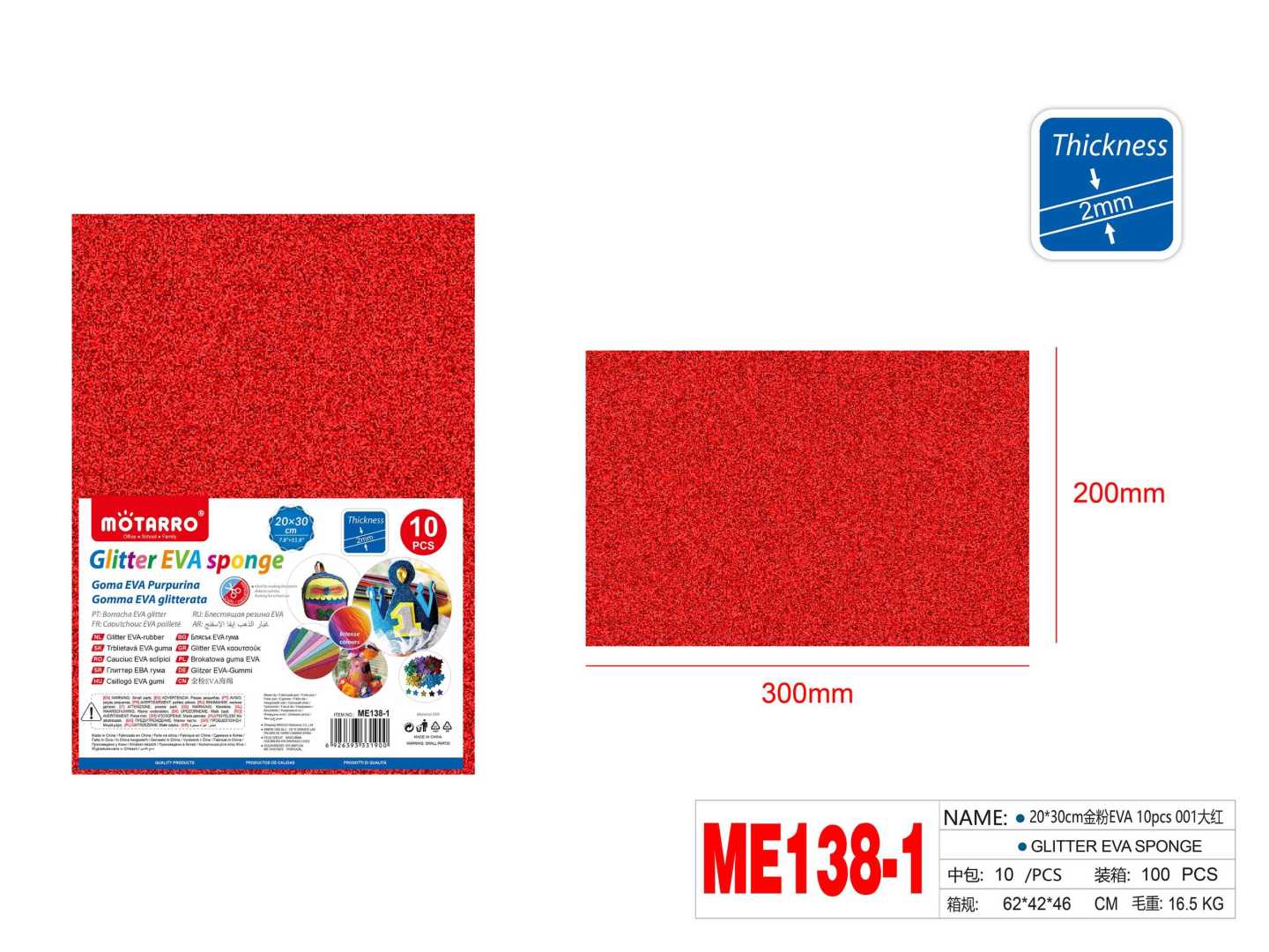 A4 EVA Glitter Foam Paper 2mm 10pcs Red