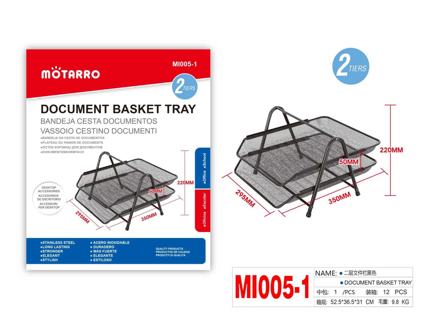2 Layers Document Tray Black 29.5x35x22cm