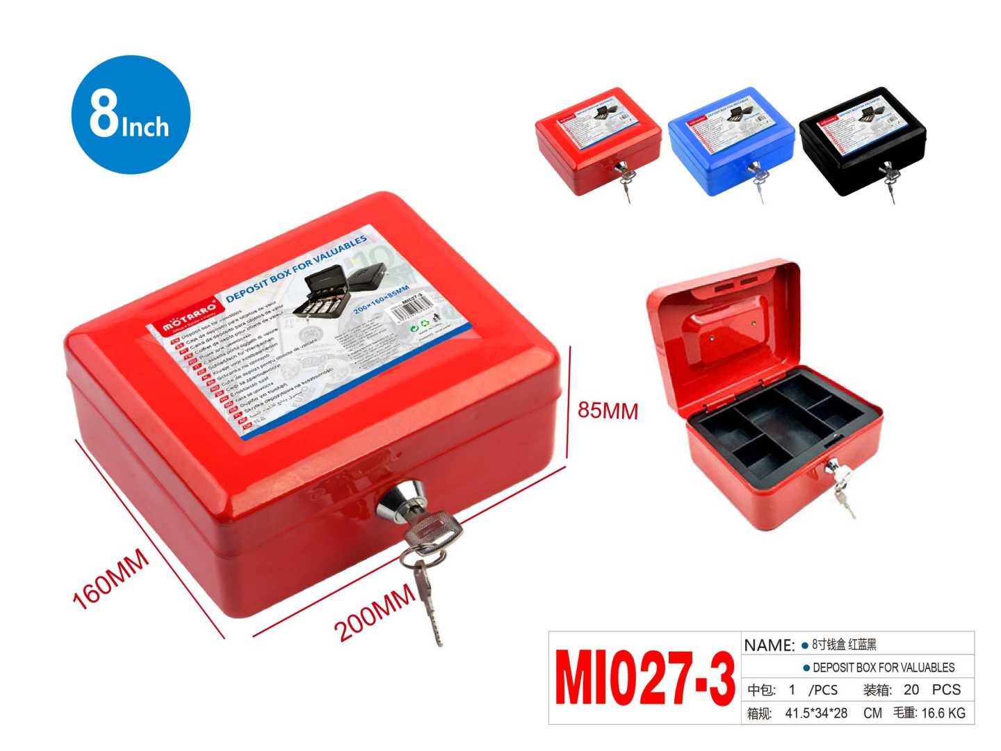 Money Box 8inch 160x200x85mm Black/Red/Blue