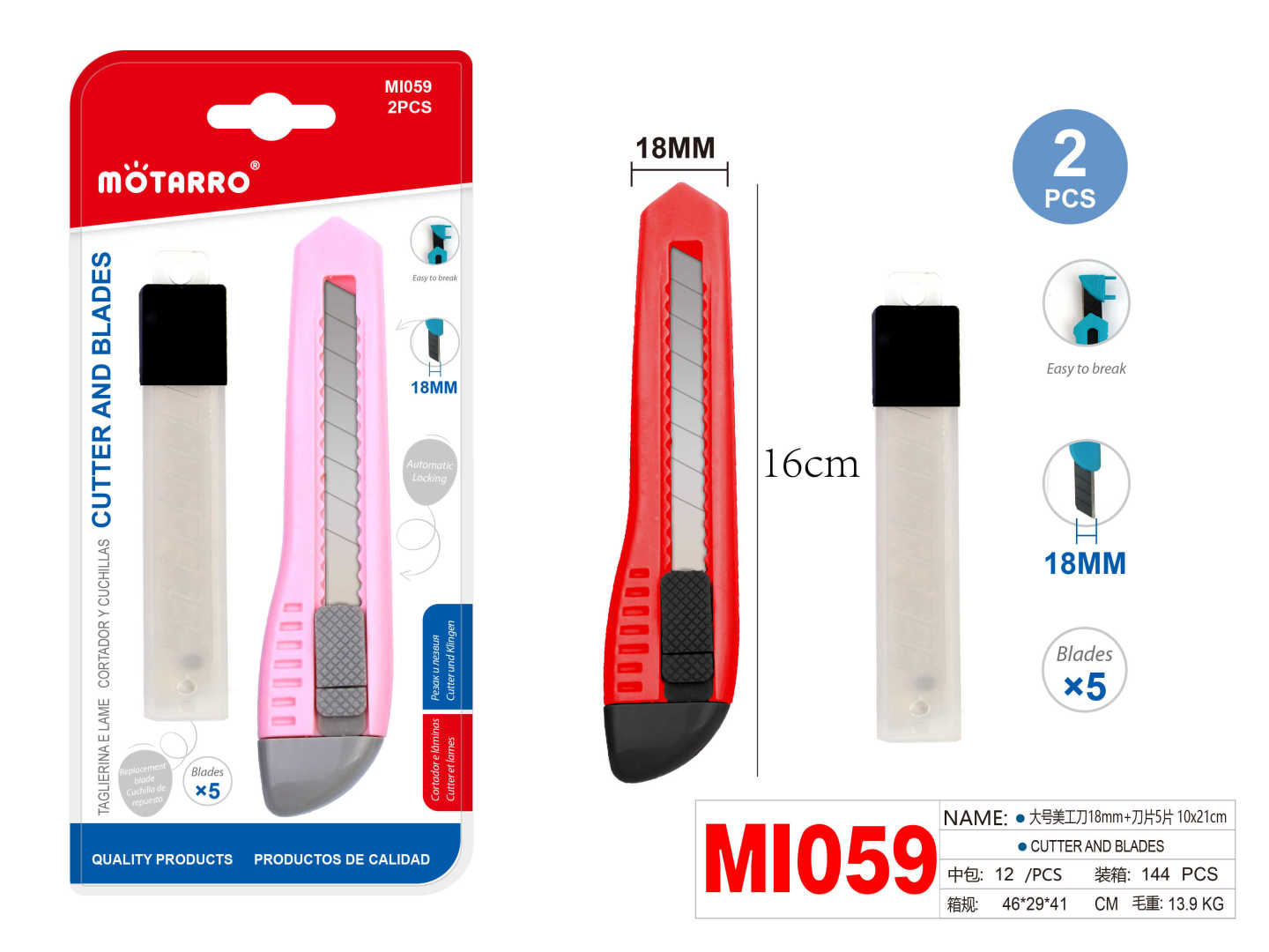 Knife with Blades 18mm 5pcs+1pcs 18mmx16cm Blue/Red