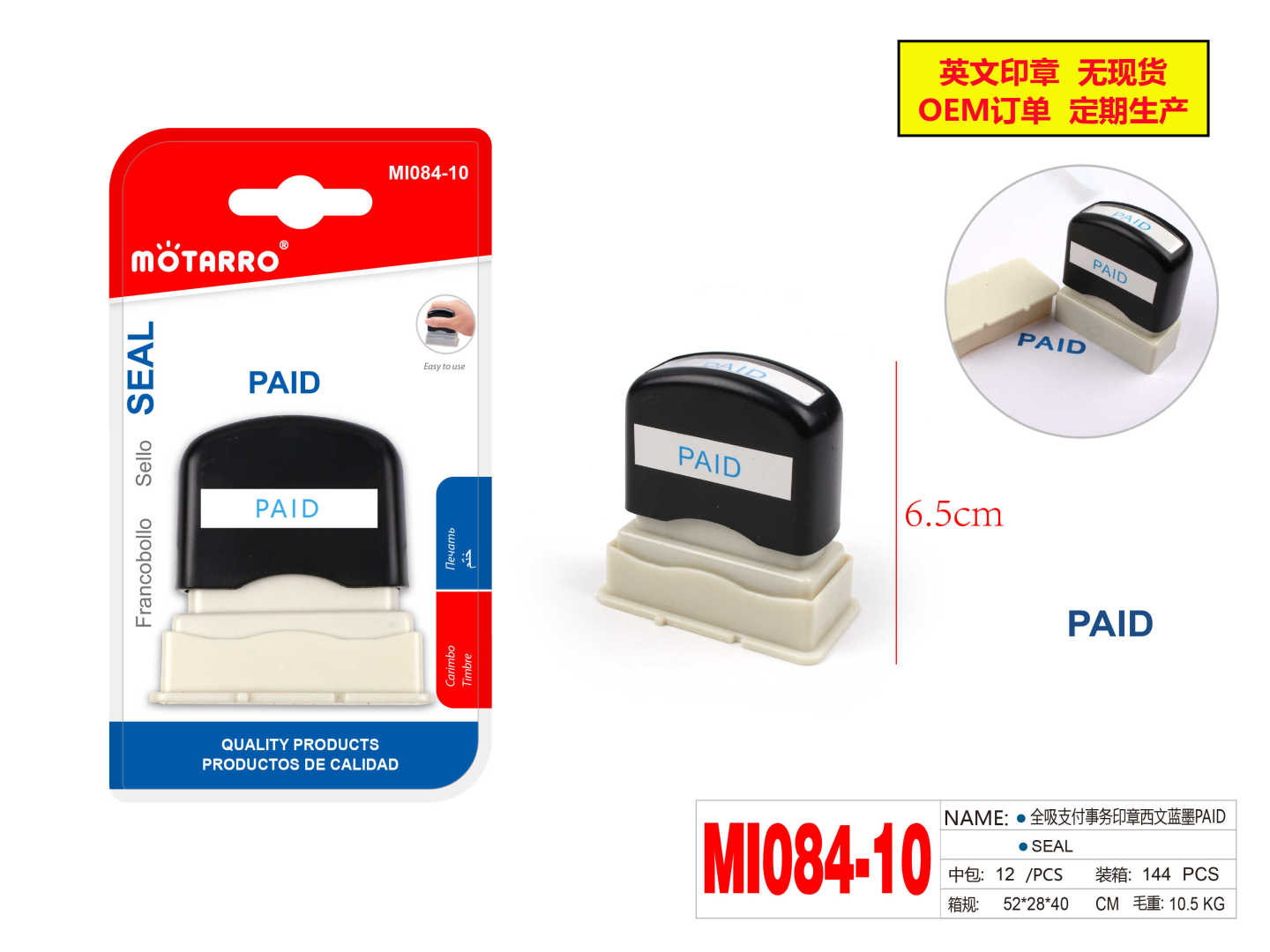 Pre-Inked Office Stamp PAID Blue Ink 5.5x8.5cm