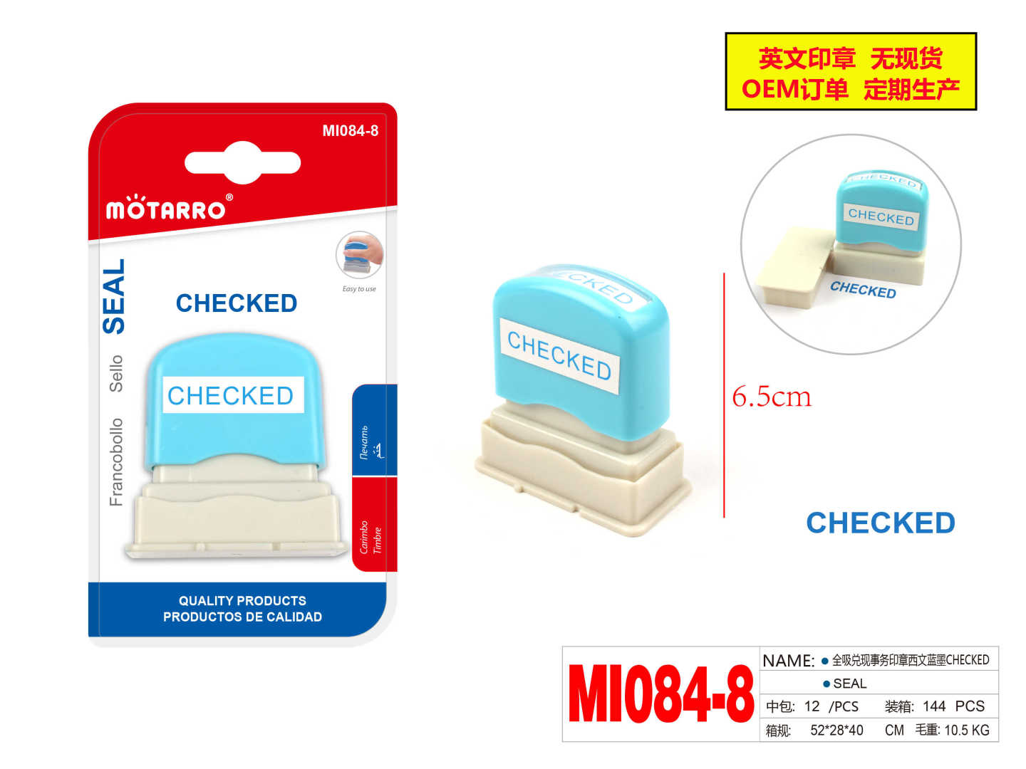 Pre-Inked Office Stamp CHECKED Blue Ink 6.5cm