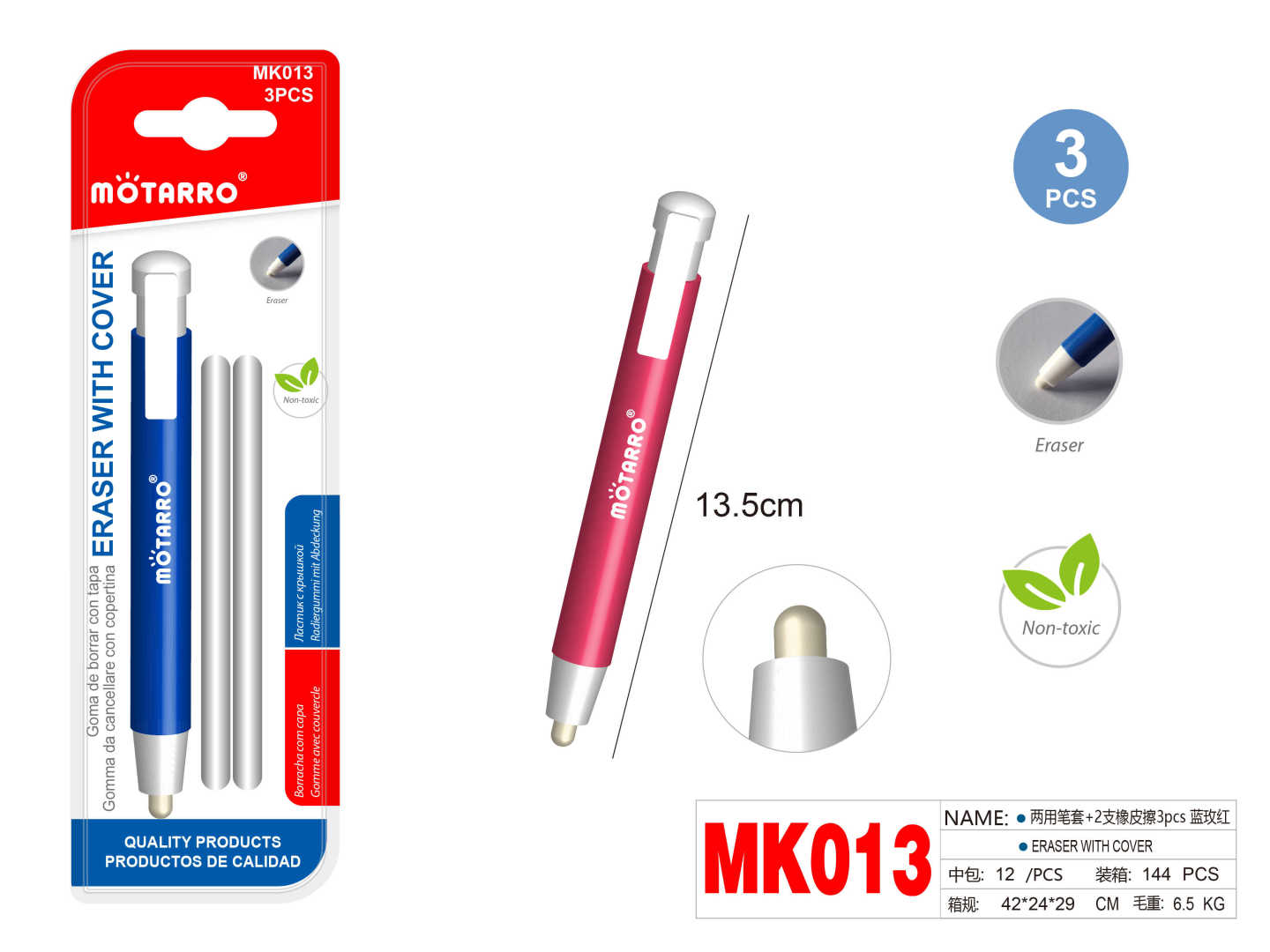 Eraser Pen 3pcs 13.5cm Pink/Blue