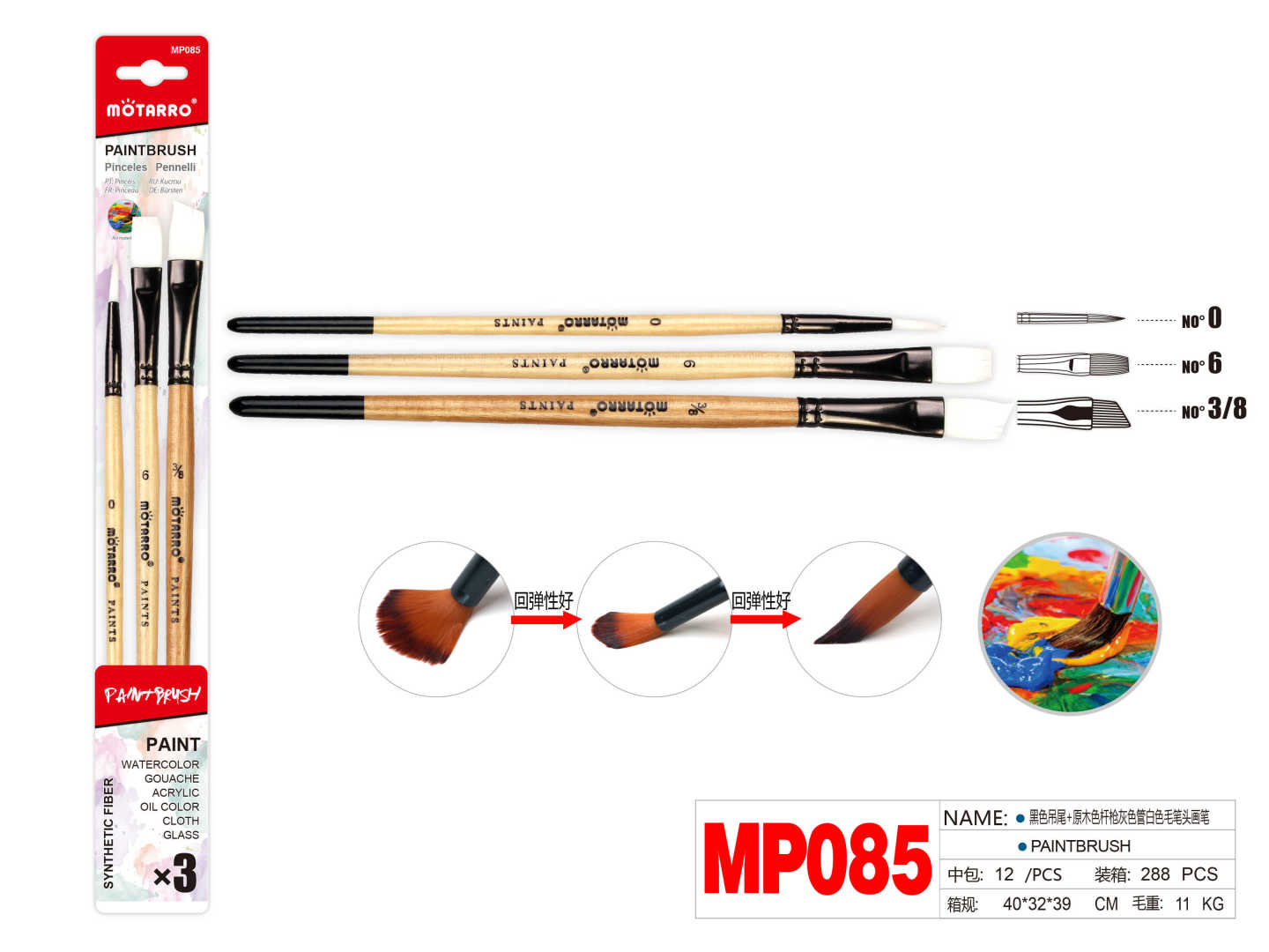 Set of 3 Paint Brush Nature Color Round No.0, Long FlatNo.6 & Angle No.3/8