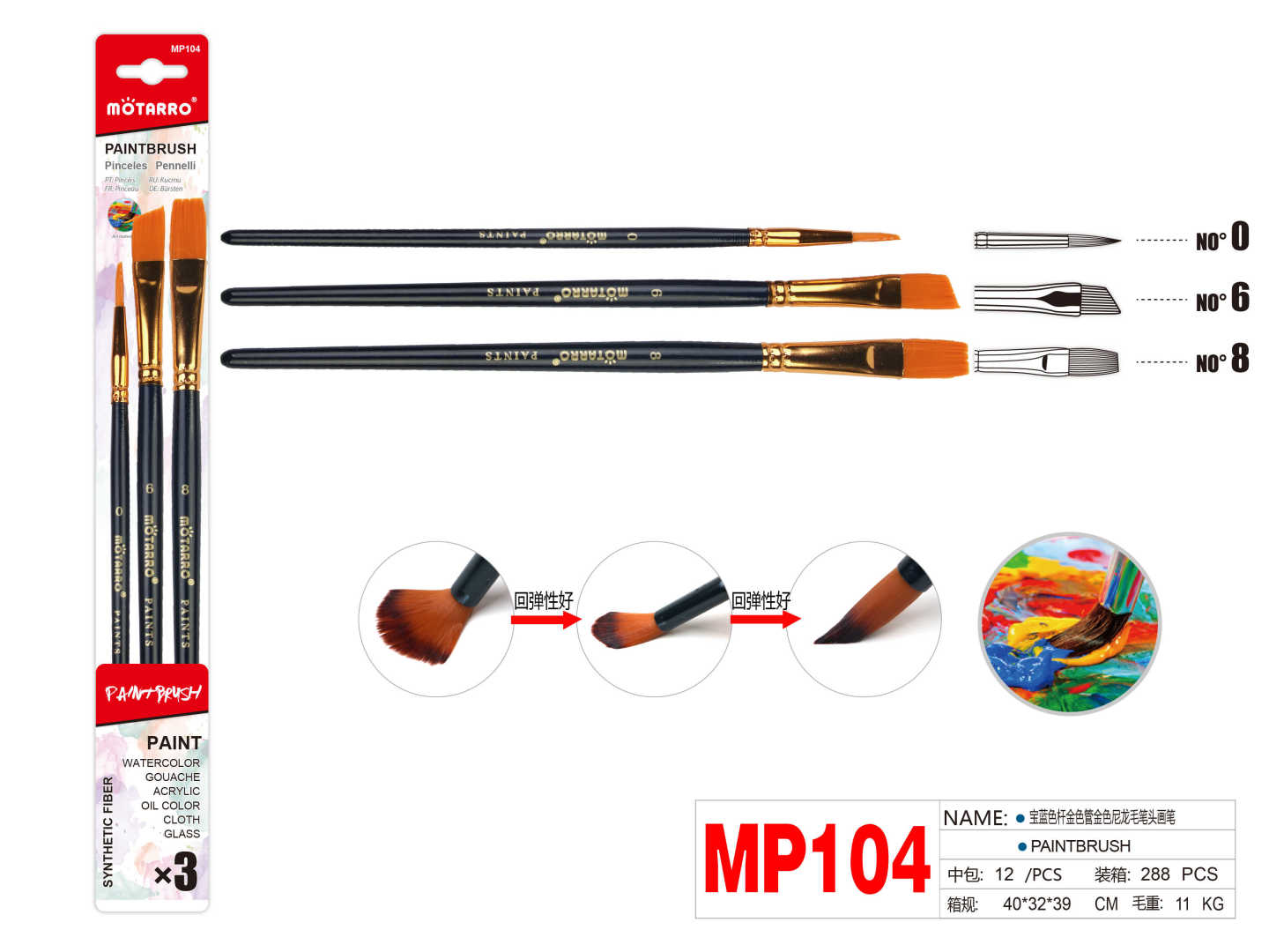 Set of 3 Paint Brush Navy Round No.0, Angle No.6 & Long FlatNo.8
