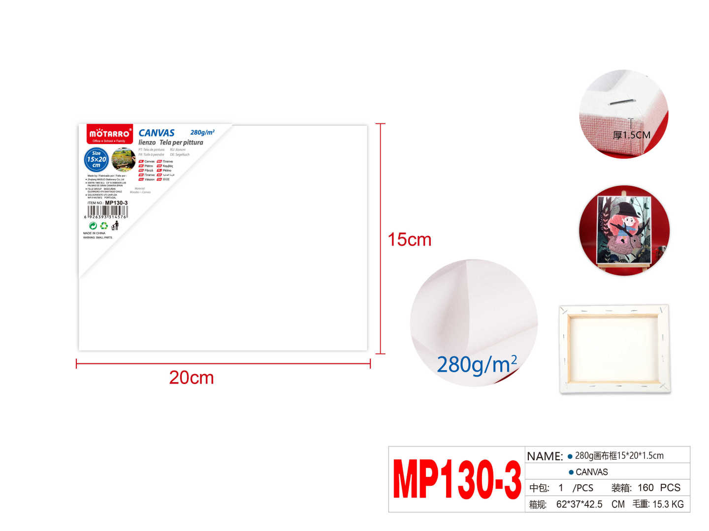 280g Canvas 1.5cm 15*20cm