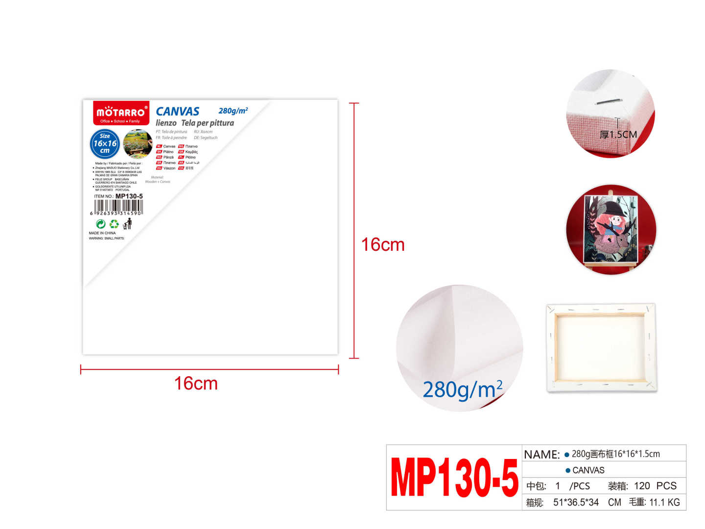 280g Canvas 1.5cm 16*16cm