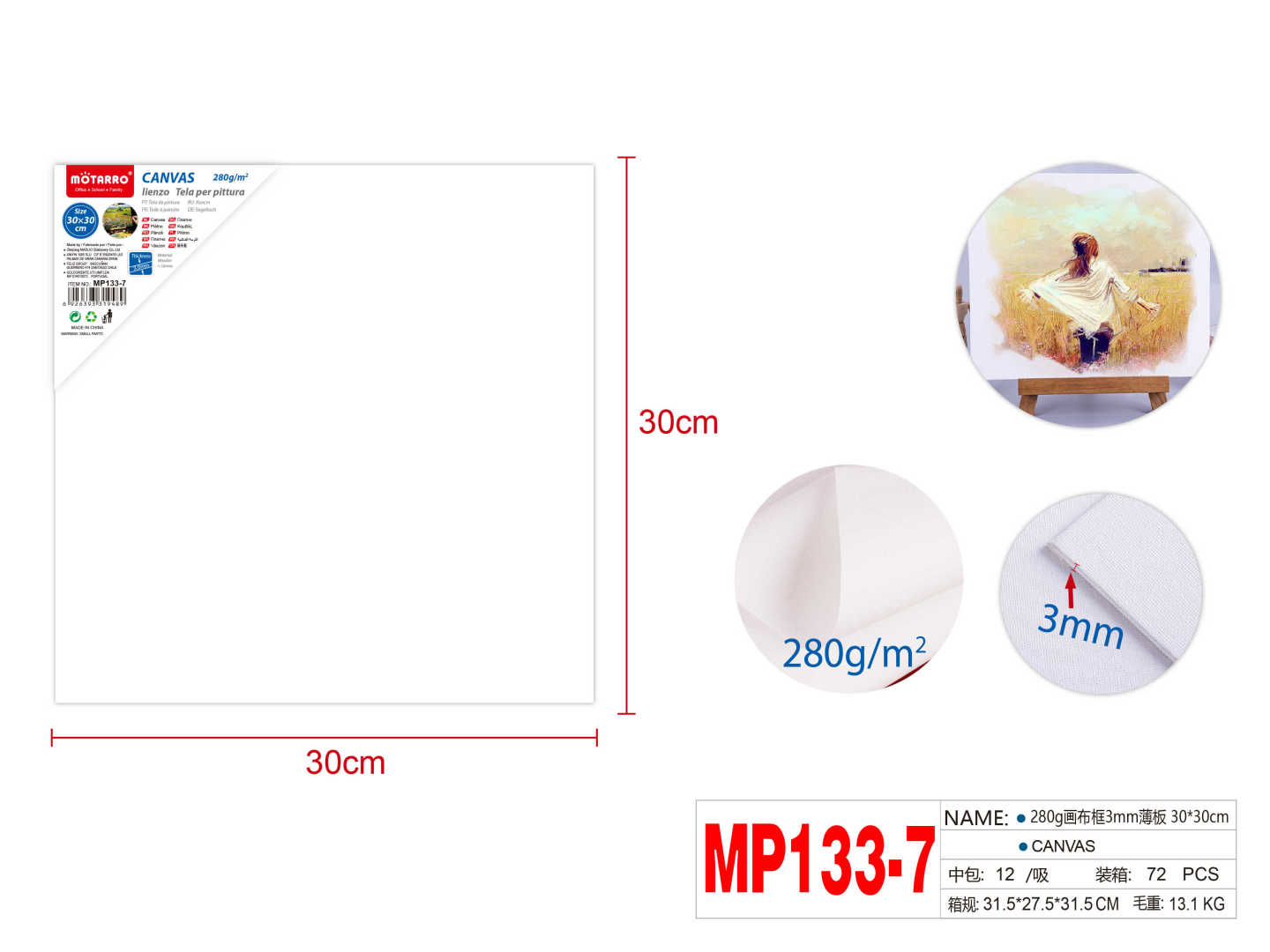 280g Thin Canvas 3mm 30*30cm