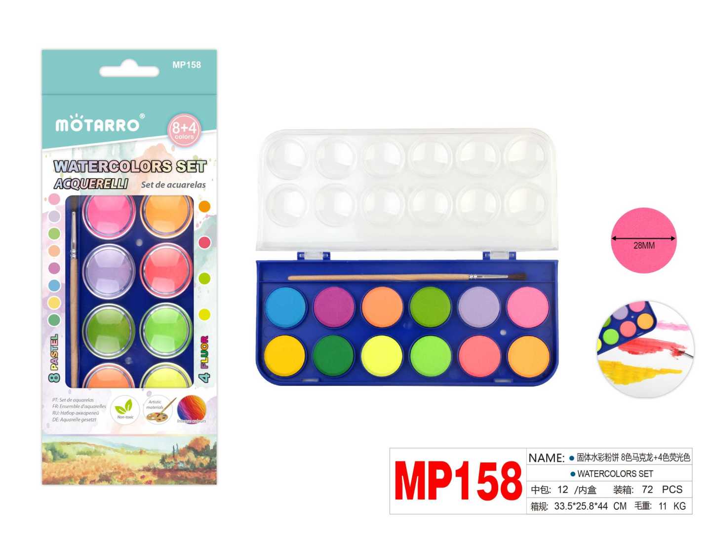 Watercolor Set of 12 Pastel Color x8 + Fluoro Color x4