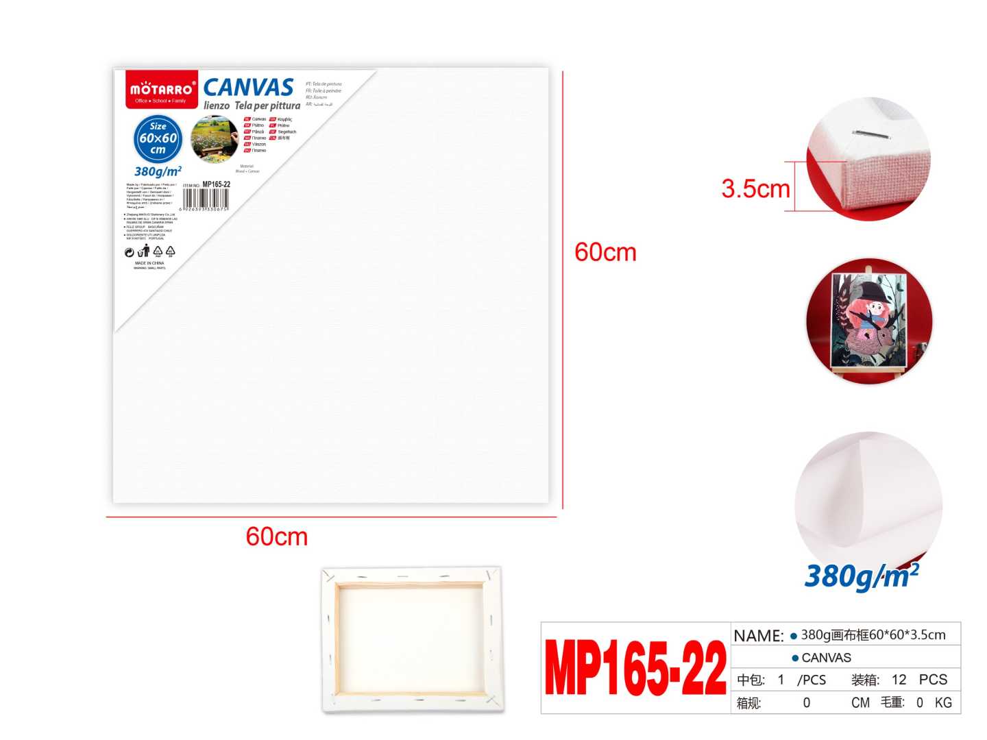 380g Deep Canvas 3.5cm 60*60cm