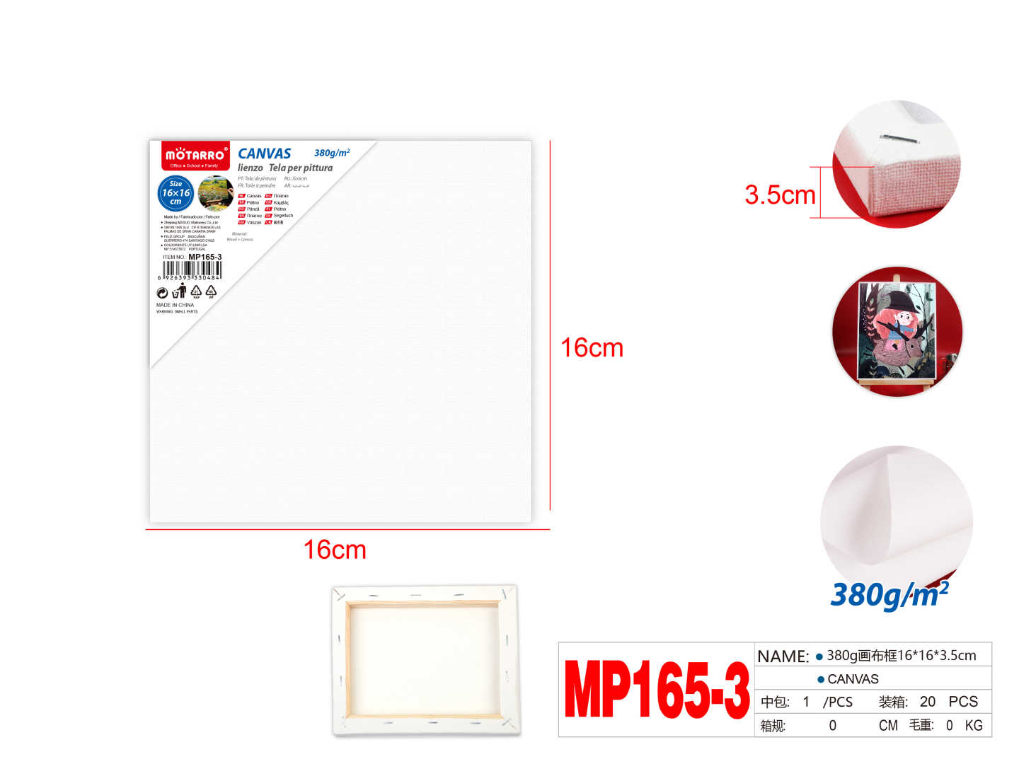 380g Deep Canvas 3.5cm 16*16cm
