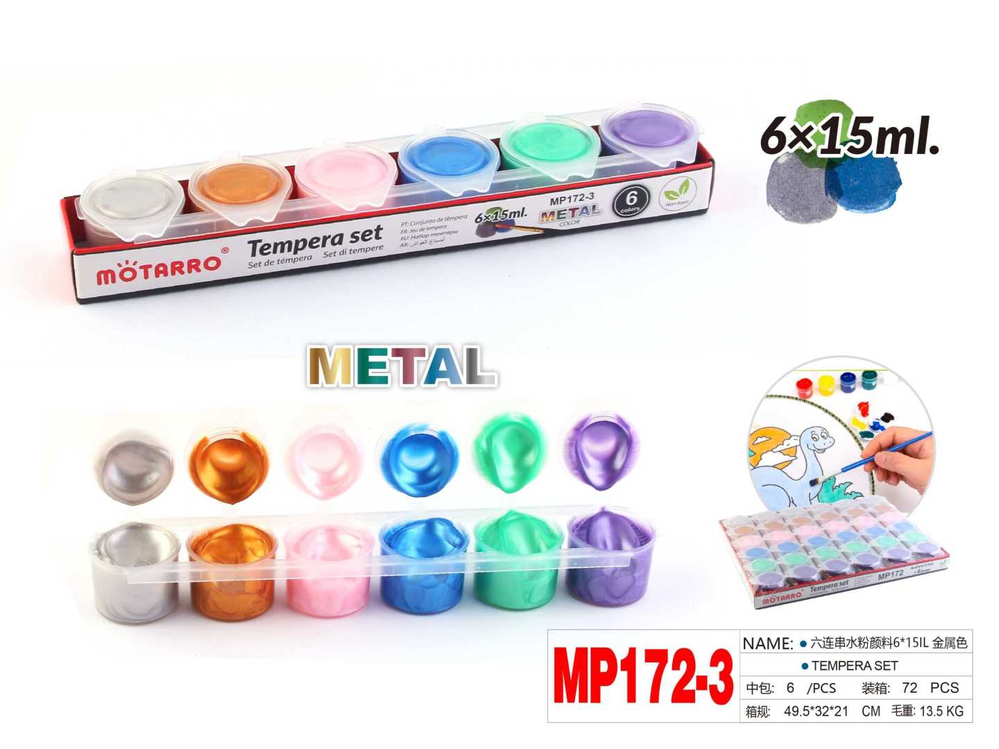 Metal Tempera Paint set of 6 15ml