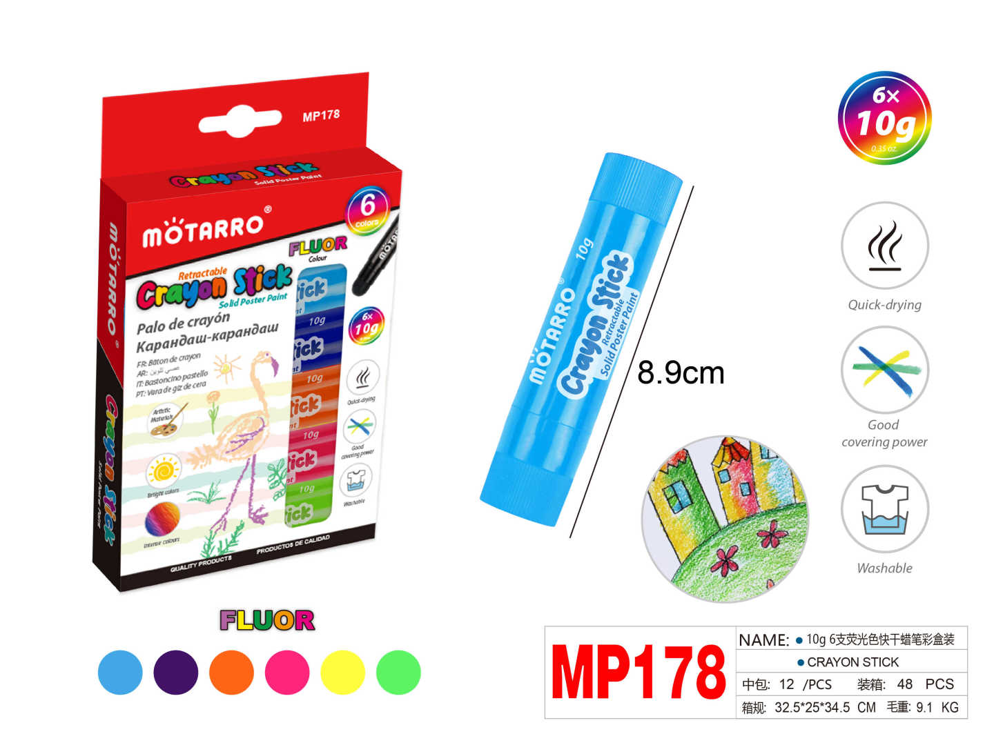 Quick-dry Washable Crayon Sticks with Holder Set of 6 10g Fluorescent Color