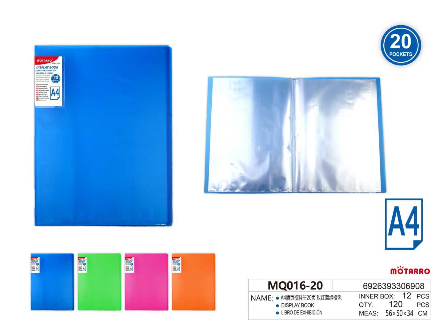 A4 Display Book 20pages Assorted Color Blue/ Green/Pink/ Orange