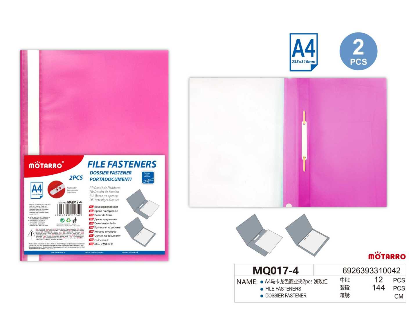 A4 Lateral File with File Fastener Pink 2pcs