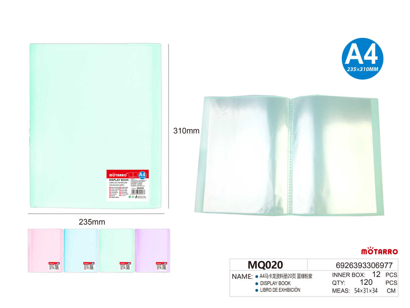 A4 Display Book 20Pockets Pastel Colors Pink/Blue/Green/Purple