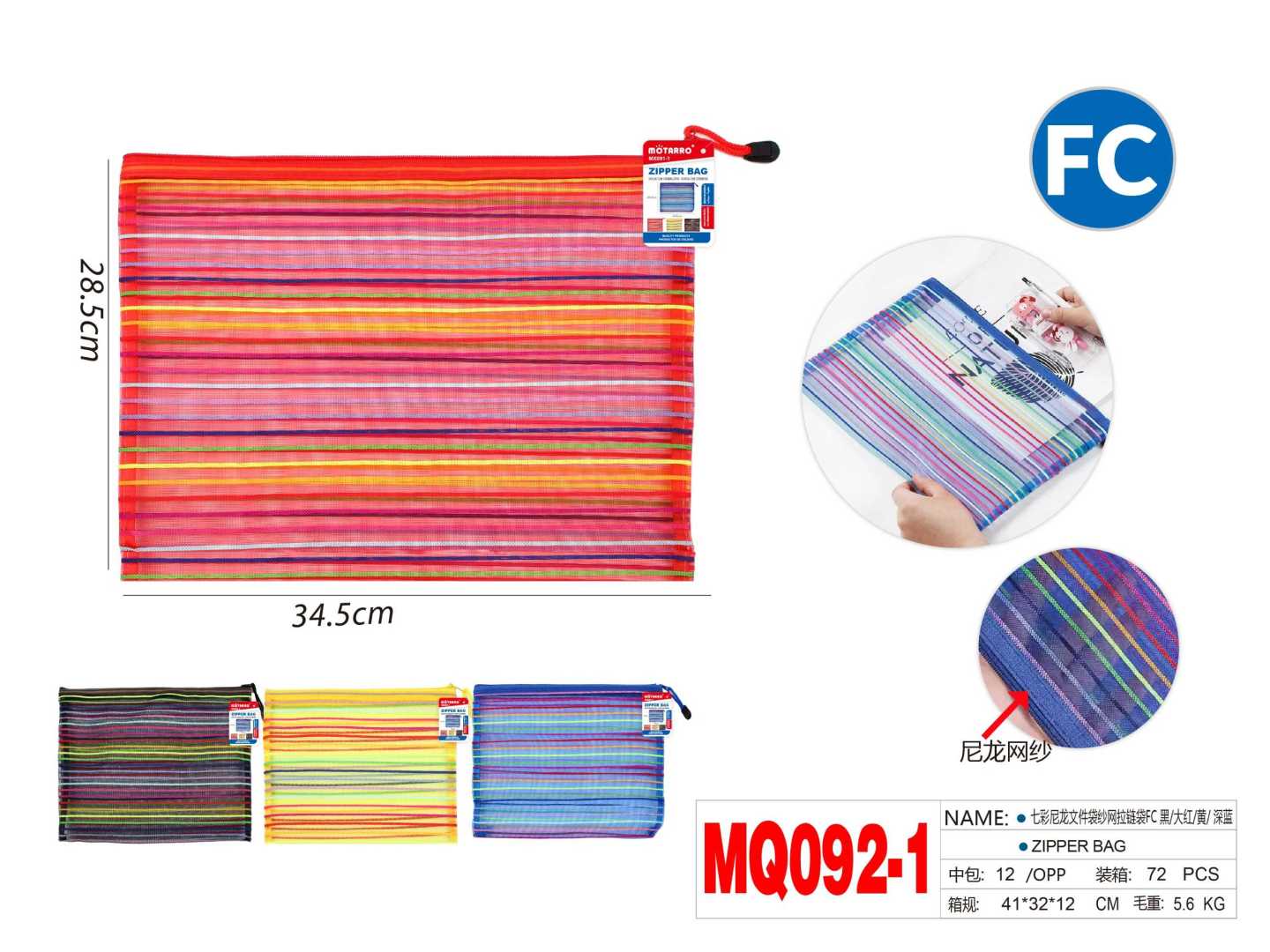 FC Stripe Zipper Pouch Red/Black/Yellow/Blue 28.5x34.5cm