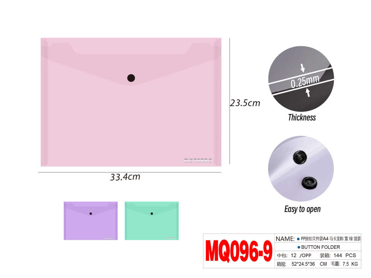 A4 Button Pastel Colors Document Wallet Pink/Purple/Green