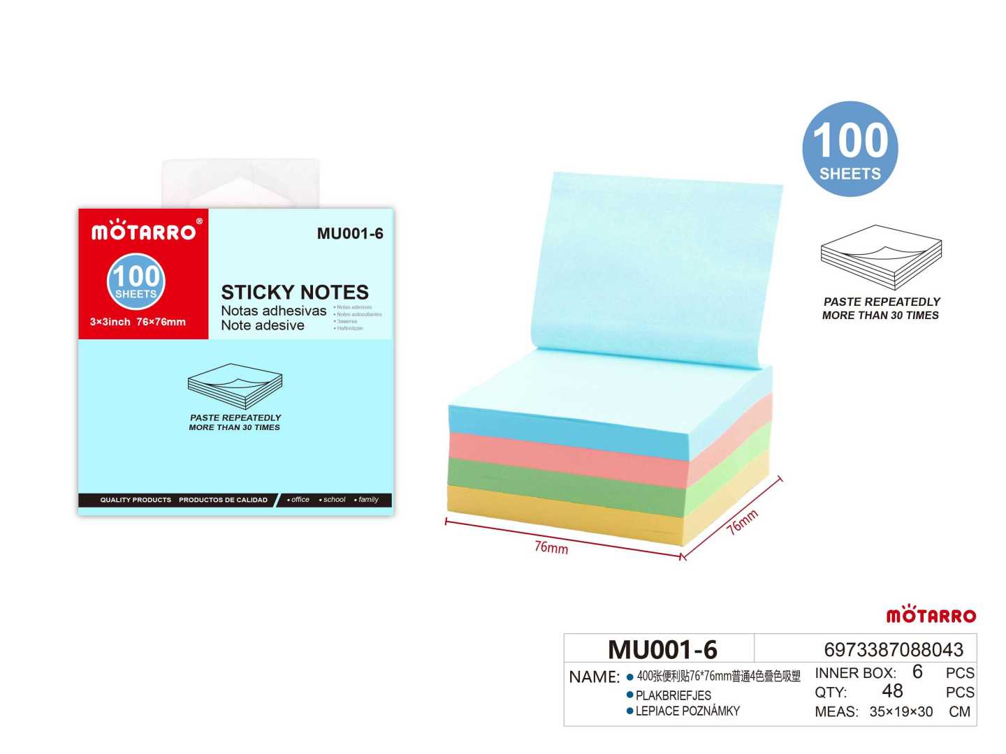 Sticky Notes 76*76mm 400pcs 4 Color Mixed