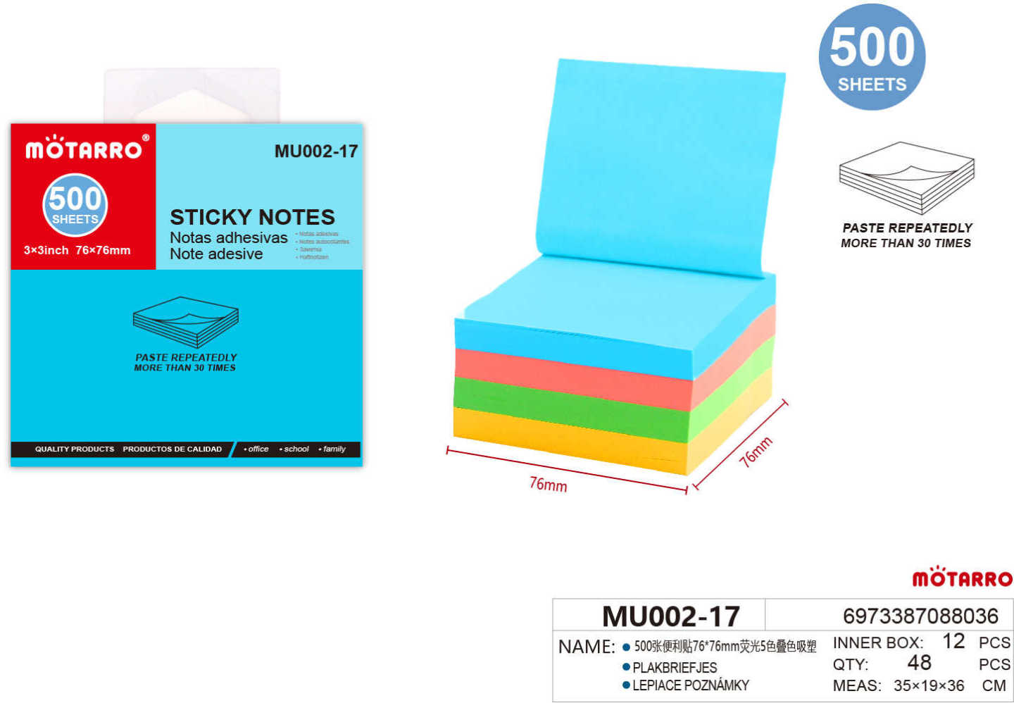 Sticky Notes 76*76mm 500pcs 5 Fluoro Color Mixed