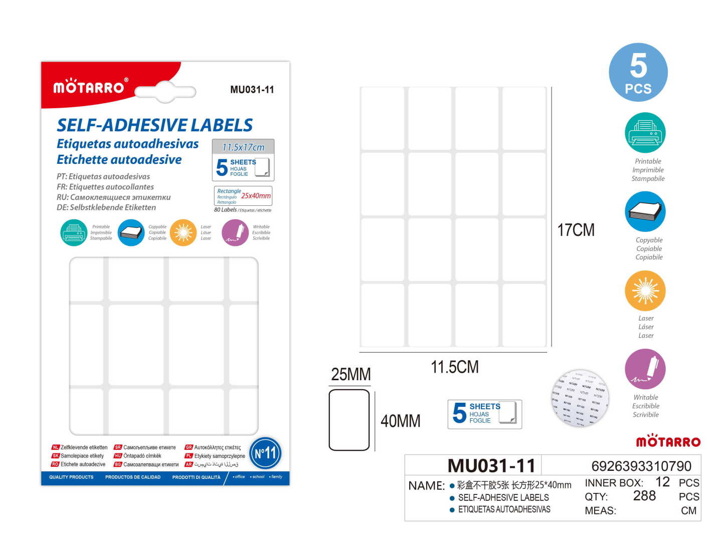 Self-Adhesive Labels Rectangle 25*40mm 5sheets