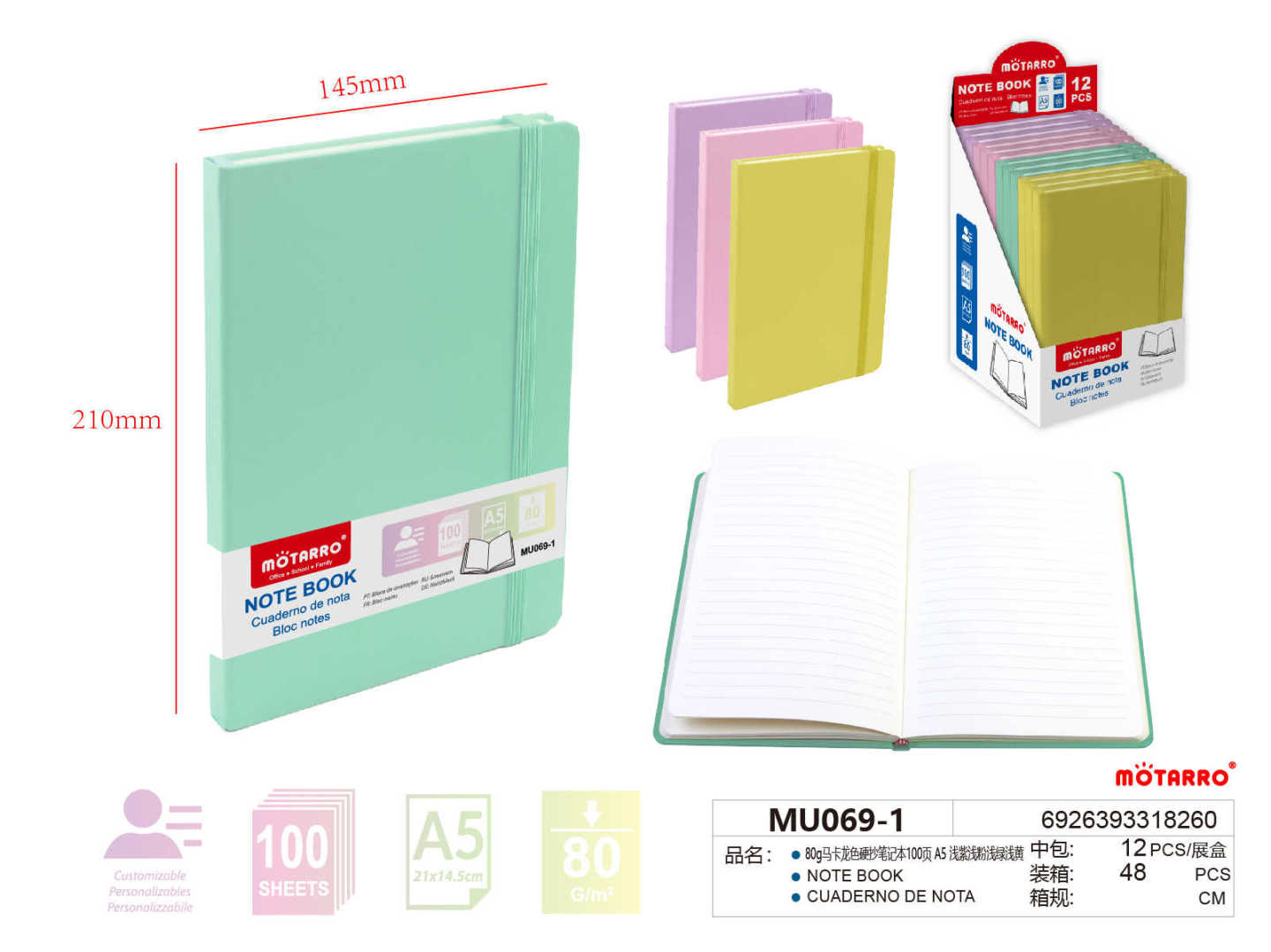 A5 Hard Cover Notebook 80g 100pages Plain Color Yellow/Green/Pink/Purple