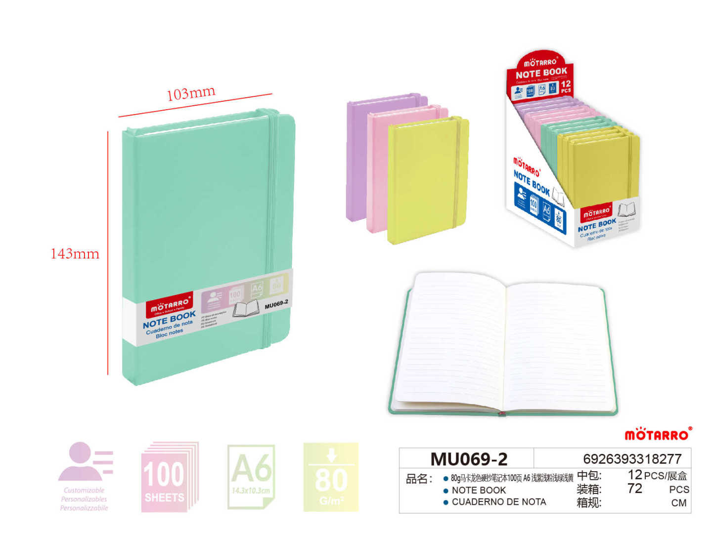 A6 Hard Cover Notebook 80g 100pages Plain Color Yellow/Green/Pink/Purple