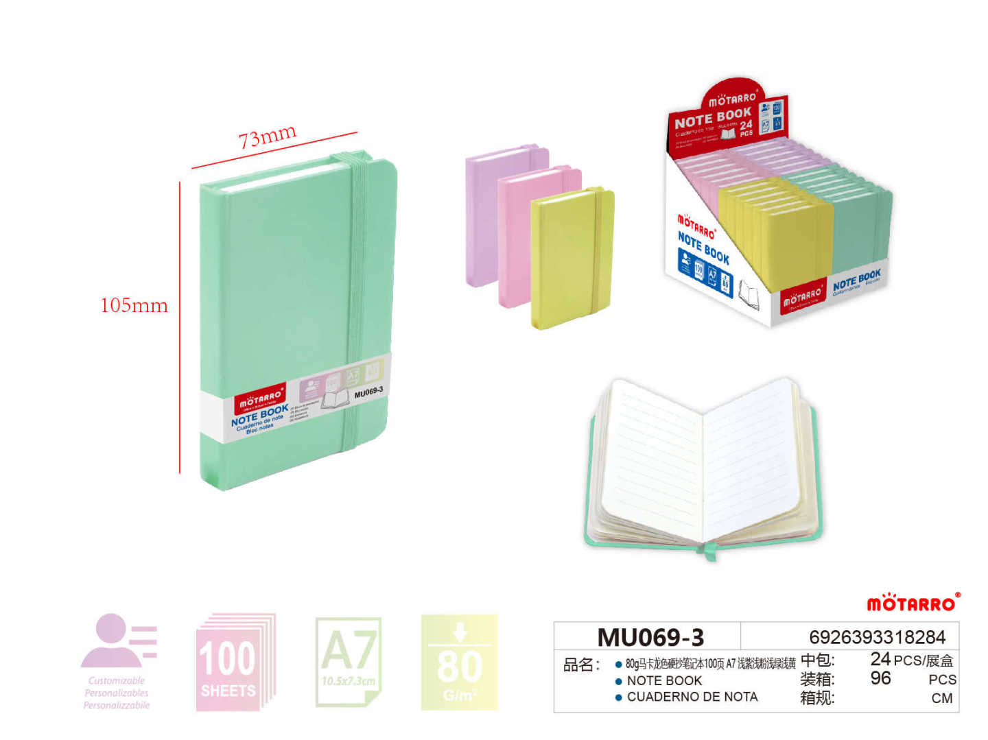 A7 Hard Cover Notebook 80g 100pages Plain Color Yellow/Green/Pink/Purple