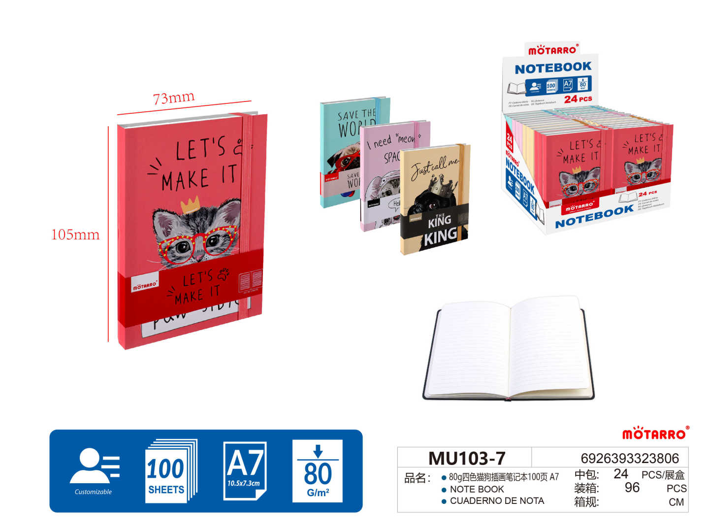 A7 Notebook 4 Assorted Pet 80g 100page