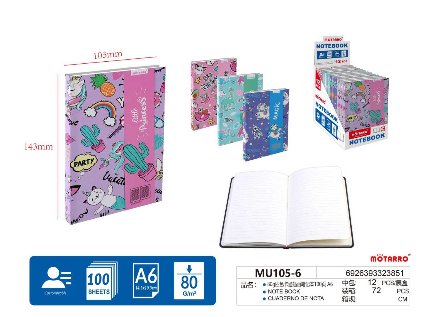 A6 Notebook 4 Assorted Cartoon 80g 100page