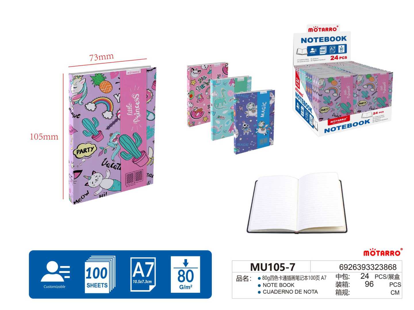 A7 Notebook 4 Assorted Cartoon 80g 100page